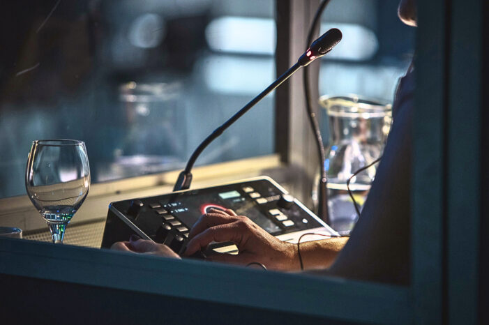 Simultaneous interpretation is commonly used for large conferences or events and can often be a complex and difficult process. The interpreter translates the message in the target language, while the source-language speaker continuously speaks.